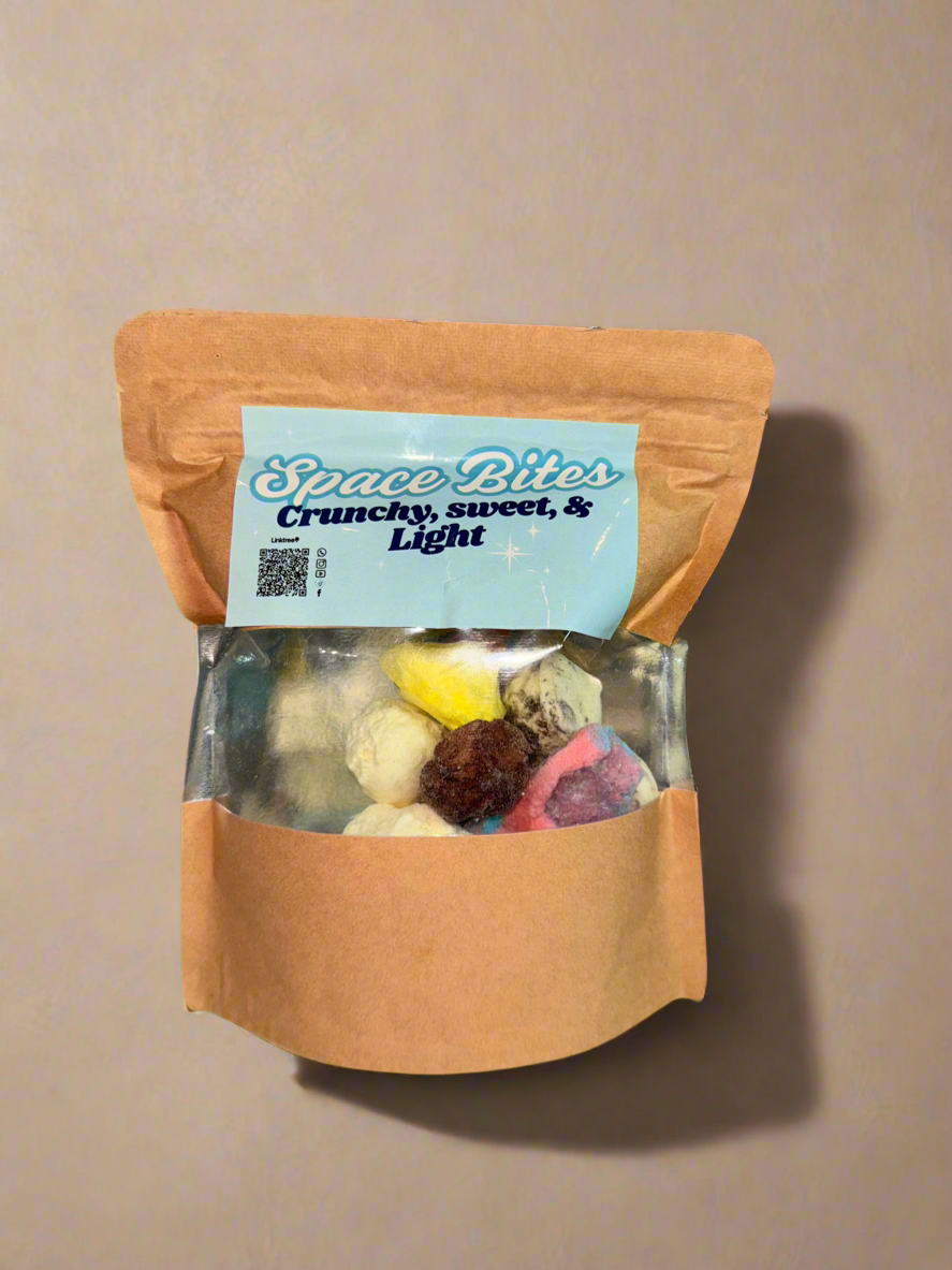 Get ready to taste space! Space Bites Freeze-Dried Gelato is made using premium ingredients and advanced freeze-drying technology, delivering the perfect crunchy treat with sweet creamy notes and a satisfyingly crisp bite. Ideal for snacking, gifting, or experiencing your favorite sweets in a whole new way.