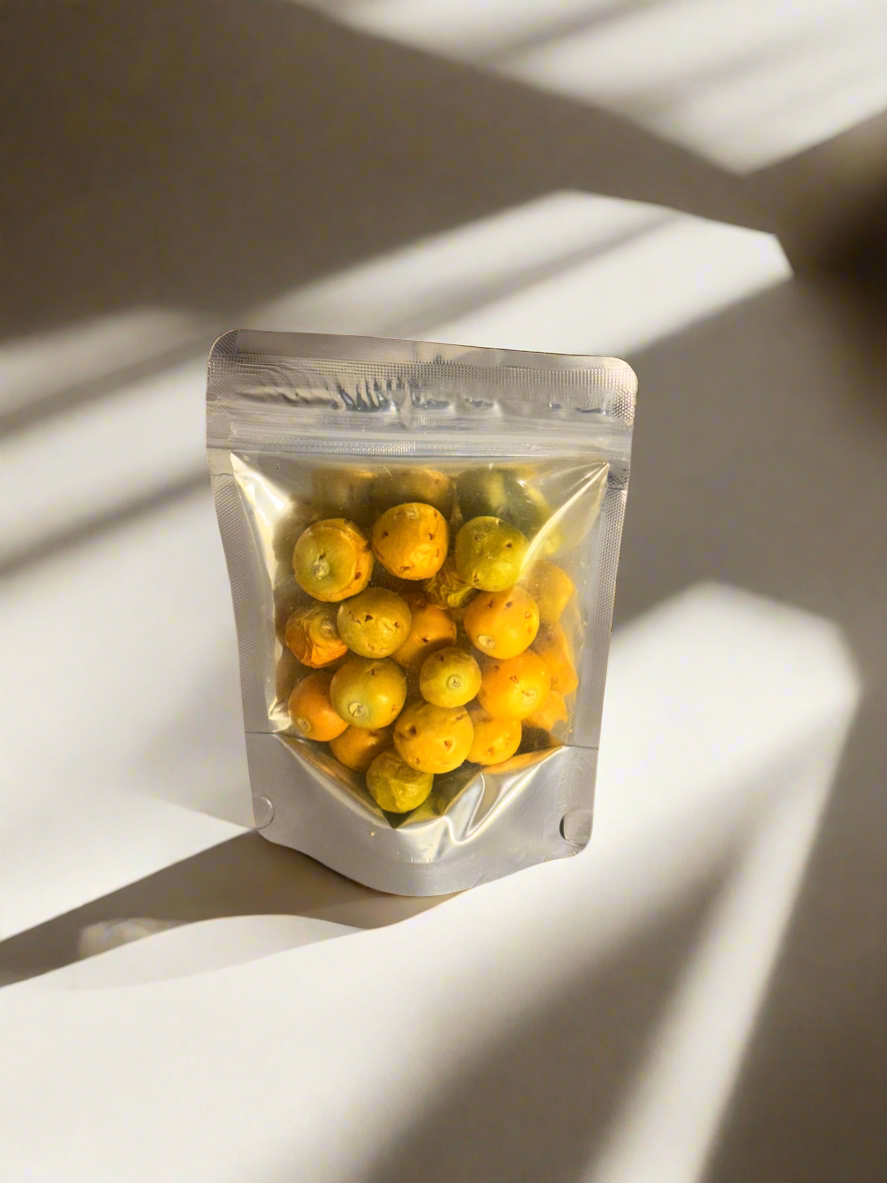 Welcome to the future of snacking! Space Bites Freeze-Dried Golden Berries is made from 100% premium Egyptian fruit with no added sugar, preservatives, or artificial ingredients. Our advanced freeze-drying technology locks in flavor, nutrients, and color, transforming the fruit into an irresistibly crunchy snack.