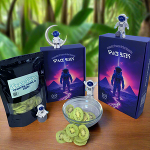 Welcome to the future of snacking! Space Bites Freeze-Dried Kiwi is made from 100% premium Egyptian fruit with no added sugar, preservatives, or artificial ingredients. Our advanced freeze-drying technology locks in flavor, nutrients, and color, transforming the fruit into an irresistibly crunchy snack.