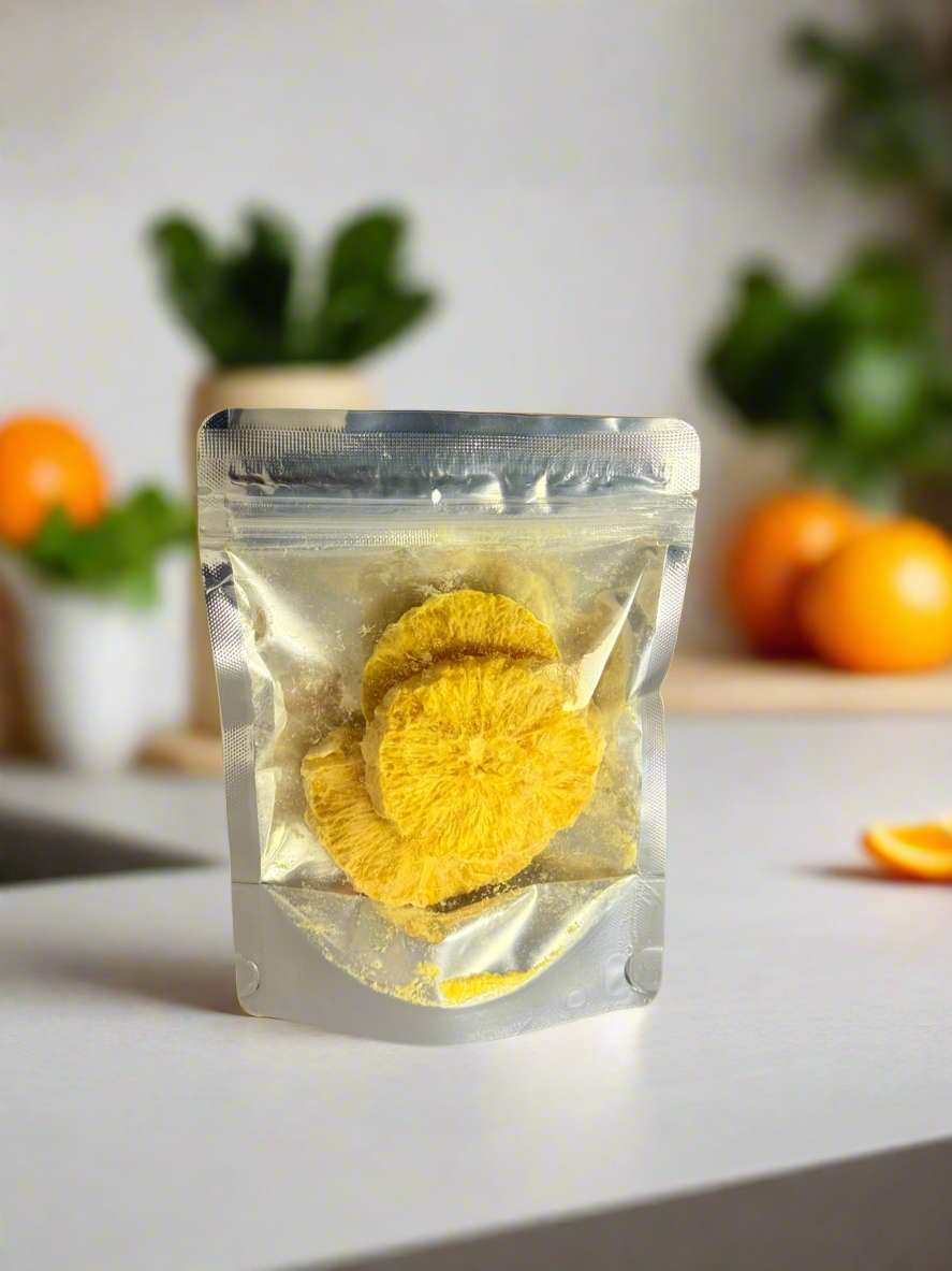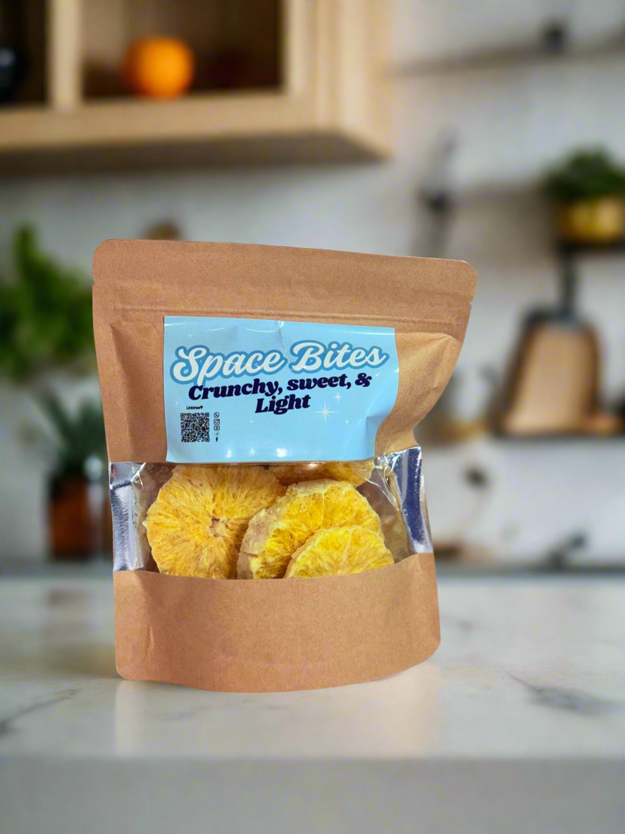 Welcome to the future of snacking! Space Bites Freeze-Dried Oranges is made from 100% premium Egyptian fruit with no added sugar, preservatives, or artificial ingredients. Our advanced freeze-drying technology locks in flavor, nutrients, and color, transforming the fruit into an irresistibly crunchy snack.